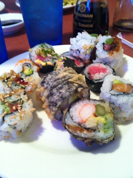 -An all-you-can-eat sushi buffet for $9 is the key to my heart. And don’t let the crazy bargain fool you, the quality of the rolls was on point! Here’s a picture of one (of many) of my plates.